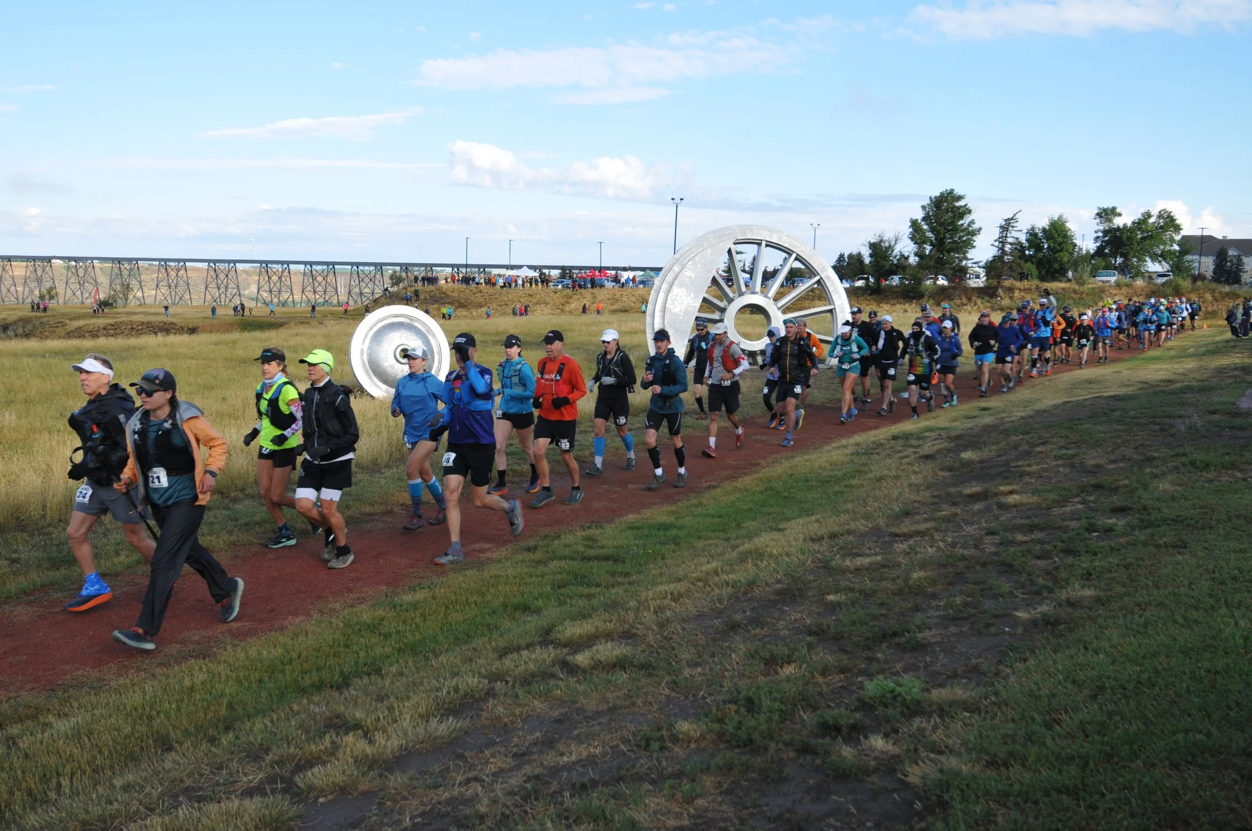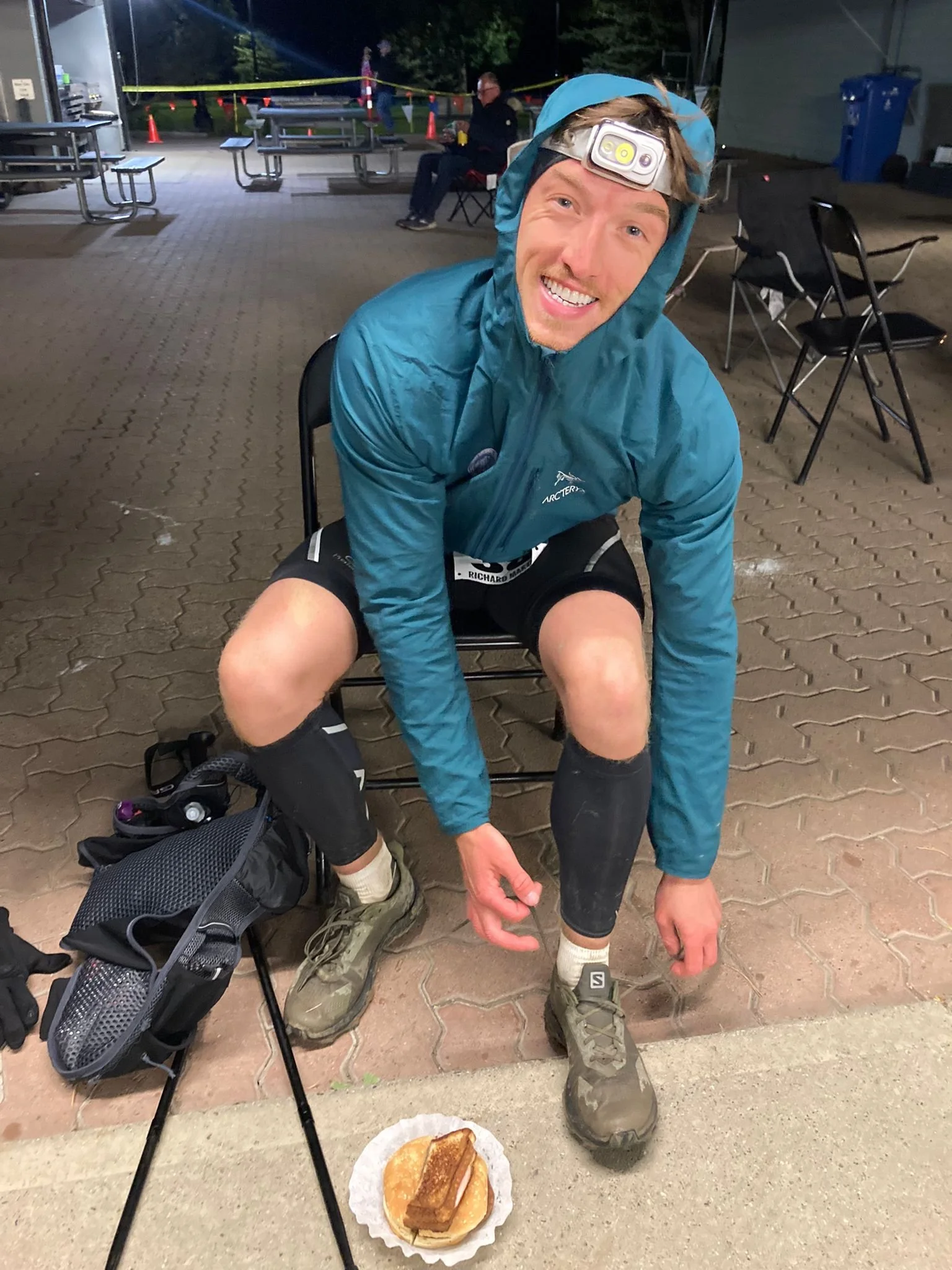The city of Lethbridge is relatively flat compared to Banff, so I was confident that my training would hold up well. On each lap, half was essentially flat, while the other included 16 coulees, short but steep hills, most of these ranging from 150 to 250 feet. Each lap included three aid stations, which we passed twice, so six per lap. These stations offered a spread of food—chicken, burgers, pizza, fruit, sweets, and cakes. You name it, it was on offer. By the end of the race, my go to snack had become watermelon slices covered in copious amounts of salt, a peculiar combination but oddly satisfying at the time. These stations were staffed by incredible volunteers who went out of their way to help as you came stumbling in.